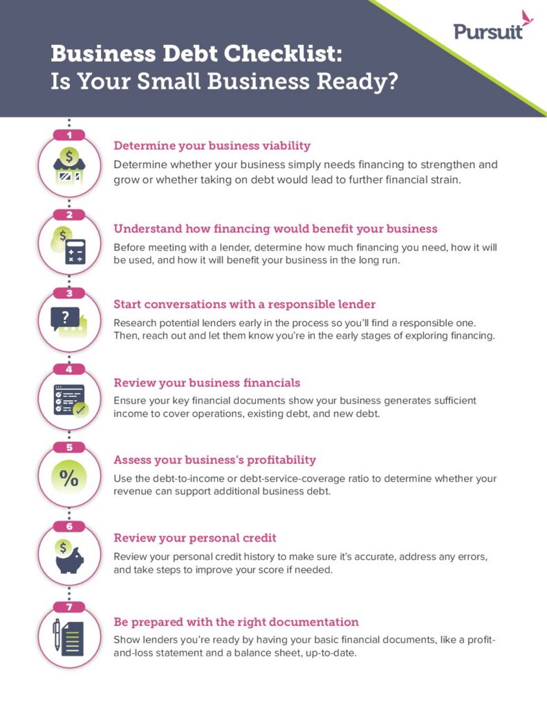 Before you move forward with new business debt, review your business viability to determine whether your business simply needs financing to strengthen and grow or whether taking on debt would lead to further financial strain.